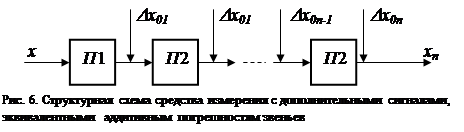 Аддитивная погрешность может быть проанализирована путем введения в структурную схему дополнительных сигналов ___, ____,...,___________ ____, равных смещениям функций преобразования соответствующих звеньев.