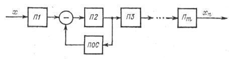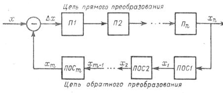 На входе цепи прямого преобразования происходит сравнение (компенсация) входной измеряемой величины х и выходной величины цепи обратного преобразования х m, которая должна быть однородной с величиной х и иметь при установившемся режиме противоположный знак.