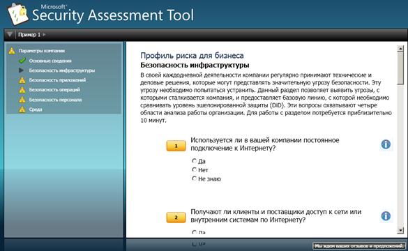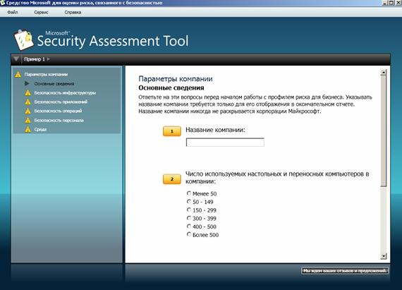 Для использования MSAT сначала необходимо создать профиль. Этот профиль включает несколько основных вопросов об организации, а также полную оценку профиля риска для бизнеса.