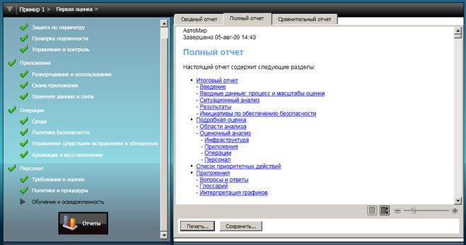Профиль риска для бизнеса и индекс эшелонированной защиты Сводный отчет