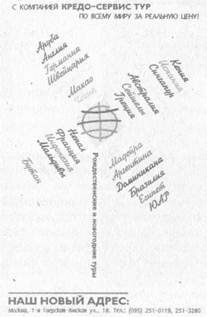 Рис. 42. Журнальная реклама компании «Кредо-сервис Тур»