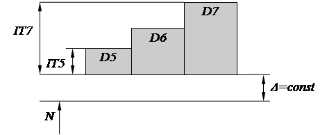 Для одного и того же интервала номинальных размеров каждое основное отклонение остается постоянным, а меняется лишь величина допуска IT(рис. 28).