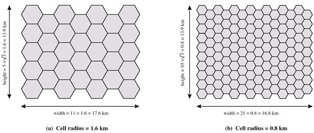 а) Радиус ячейки = 1,6 км б) Радиус ячейки = 0,8 км