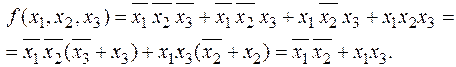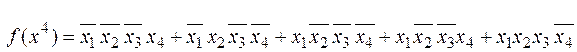 СДНФ функции f содержит ровно столько конъюнкций, сколько единиц в таблице f. Каждая комбинация произведений дает 1 в единственном случае, когда переменная без отрицания равна 1, а с отрицанием равна 0. Для данного примера СДНФ