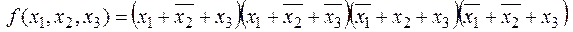 СКНФ функции f содержит ровно столько дизъюнкций, сколько 0 в таблице f. Каждому нулевому набору соответствует дизъюнкция всех переменных, в которой xi взято с отрицанием, если переменная равна 1 и наоборот.