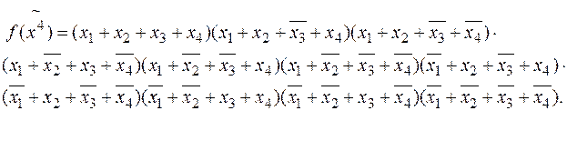 Используя табличное представление данной функции (табл. 9.3) получаем следующее разложение (СКНФ):