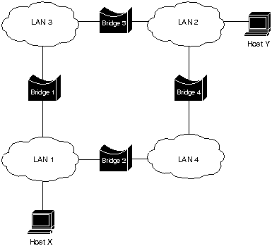 Чтобы точно определить местоположение отдаленной машины Y, машина Х отправляет блок данных разведчика (explorer). Каждый мост, получающий этот блок данных (в нашем примере это Мосты 1 и 2), копирует его во все порты отправки сообщений. По мере продвижения блоков данных-разведчиков через объединенную сеть они дополняются маршрутной информацией. Когда блоки данных-разведчики машины Х доходят до машины Y, то машина Y отвечает каждому отдельно, используя накопленную маршрутную информацию. После получения всех ответных блоков данных машина Х может выбрать маршрут, базирующийся на заранее установленном критерии.