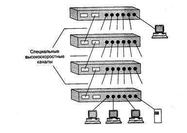 Рис.2.20.Стек коммутаторов, объединяемых по высокоскоростным каналам