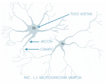 Начнем с рассмотрения биологического прототипа - нейрона. Нейрон является нервной клеткой биологической системы. Он состоит из тела и отростков, соединяющих его с внешним миром (рис. 1.1).