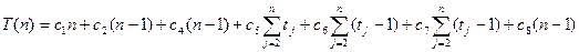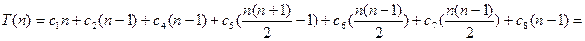 В данном случае T (n) – квадратичная (quadratic function), т.е. имеет вид Т (п) = a × n2 + b × n + с. Константы a, b и с здесь также определяются значениями с 1,..., с 8.