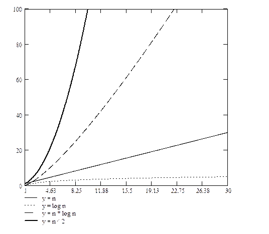 Когда используют обозначение O (), имеют в виду не точное время исполнения, а только его предел сверху, причем с точностью до постоянного множителя. Когда говорят, например, что алгоритму требуется время порядка O (n 2), имеют в виду, что время исполнения задачи растет не быстрее, чем квадрат количества элементов.