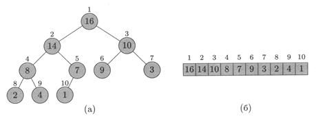 Рисунок 2.3 – Интерпретации кучи: как дерево (а) или как массив (б)