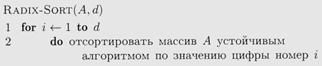 Программу для цифровой сортировки написать легко. Предполагается, что каждый элемент n -элементного массива А состоит из d цифр, причем цифра номер 1 –младший разряд, а цифра номер d – старший.