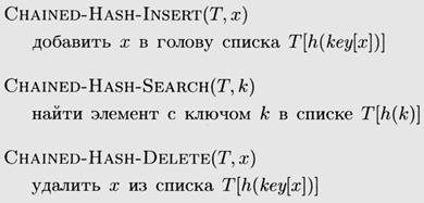 Листинг 4.3 – Словарные операции при хешировании с цепочками
