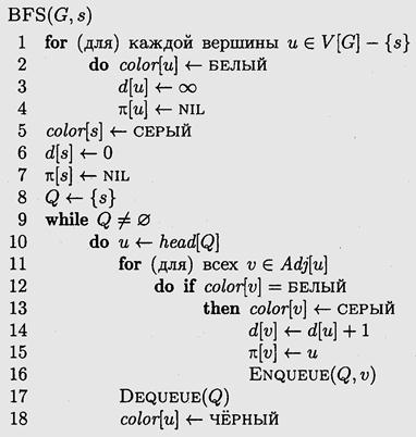 Приведённая ниже процедура BFS (breadth-first search – поиск в ширину)