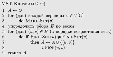 ют безопасное ребро. В алгоритме Крускала множество рёбер А представляет