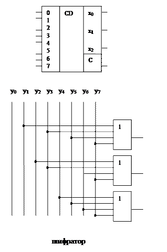 Шифратор - это логическое устройство, выполняющее преобразование позиционного кода в n разрядный двоичный код. Таким образом, шифратор - это комбинационное устройство, реализующее обратную дешифратору функцию.