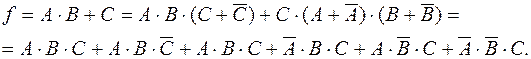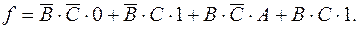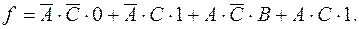 Особое значение имеет мультиплексор как средство для реализации булевых функций. На одном мультиплексоре с m адресными входами можно построить любую булеву функцию от m+1 аргументов. Для этого заданную булеву функцию необходимо преобразовать к уравнению мультиплексора (9), т.е. дополнить до первой стандартной формы. Например, в функции f=A×B+C необходимо A×B домножить на скобку