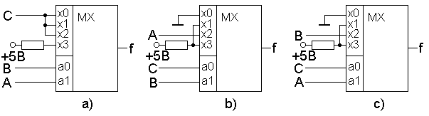 Рис.7.15 25. Схемы с применением мультиплексора по уравнениям 10 (а), 11 (b) и 12 (с)
