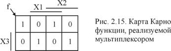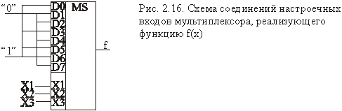 Схема комбинационного устройства, построенного на базе мультиплексора 8-1 и реализующего функцию f (x), приведена на рис. 2.16.