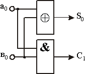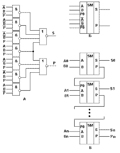 Многоразрядный сумматор с последовательным переносом. Таким образом, в общем случае для каждого разряда необходима логическая схема с тремя входами ai, bi, Ci и двумя выходами Si, Ci+1. Такая схема и есть полный сумматор. Ее можно реализовать с помощью двух полусумматоров.
