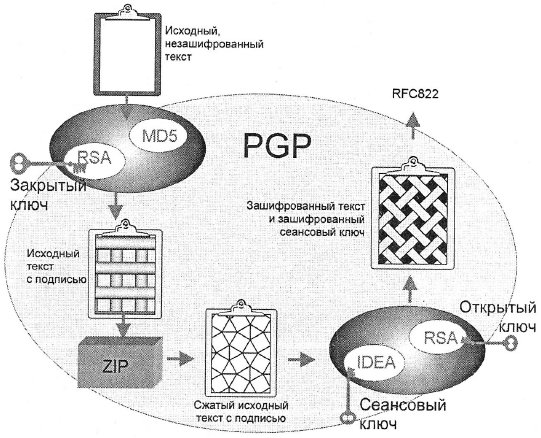 Рис. 13.6. Схема формирования защищенного сообщения с помощью пакета PGP