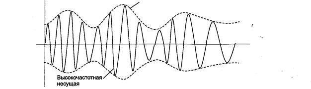 Для разделения абонентских каналов характерна техника модуляции высокочастотного несущего синусоидального сигнала низкочастотным речевым сигналом (рис. 3.1.). В результате спектр модулированного сигнала переносится в другой диапазон, который симметрично располагается относительно несущей частоты и имеет ширину, приблизительно совпадающую с шириной модулирующего сигнала.