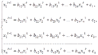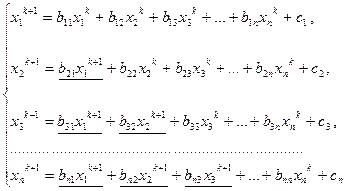 . Изменяя, если необходимо, порядок уравнений и неизвестных, можно считать, что уравнениядля подстановки берутся в порядке возрастания их номеров. Для каждого итерационного шага может быть своя нумерация, т.е. перестановки должныбыть выполненыпри переходе от итерации к итерации (например, целесообразно первой всегда вычислять компоненту, у которой наибольшая погрешность).