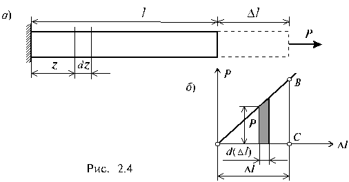 На рис. 2.9, а изображен растягиваемый силой Р стержень, удлинение которого соответствует отрезку