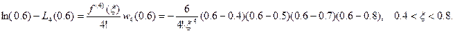 Пример. Вычислить погрешность (ошибку) полиномиальной интерполяции третьей степени для функции