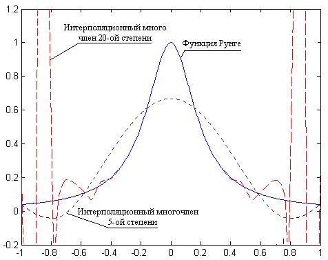 в точках, отличных от узлов интерполяции. Поэтому почти всегда используются интерполянты степени не выше 4 или 5.