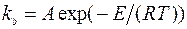 Здесь A - лабораторная константа, E - энергия активации данной реакции, R - универсальная газовая постоянная, T - температура.