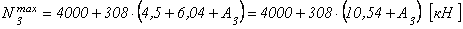 Максимальная сжимающая продольная сила возникает у основания опоры и определяется выражением (для удобства будем подставлять значения внутренних усилий по абсолютной величине):