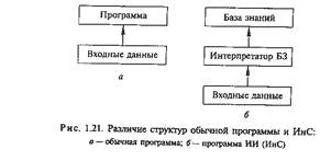 Дело в том, что стиль программирования ИнС непохож на стиль традиционного программирования с использованием обычных алгоритмических языков. На рис. 1.20 и 1.21 и в табл. 1.3 показаны характерные различия между ИнС и обычными программными системами.