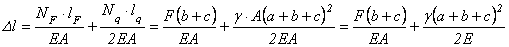 будет складываться из удлинения, полученного стержнем от действия сосредоточенной силы