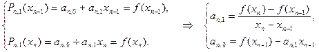 является интерполяционным многочленом первой степени с узлами интерполяции