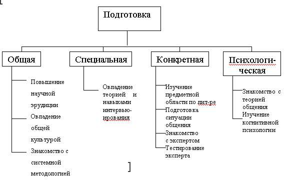 Подготовка к диалогу так же, как и к другим активным методам извлечения знаний, включает план сеанса извлечения, в котором необходимо предусмотреть следующие стадии: