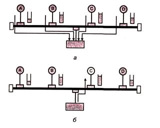 Более эффективное использование среды передачи обеспечивают схемы с резервированием, потому что при этом доступ становится управляемым и столкновений не происходит. Их можно разделить на системы с опросом, использующие центральное устройство управления, и распределенные системы.