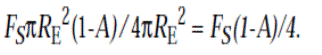 Поток солнечной радиации FS поглощается диском Земли площади p RE2. Отраженная обратно в пространство радиация определяется планетарным альбедо, которое по спутниковым измерениям A=0.28. Тогда поглощенная Землей радиация будет