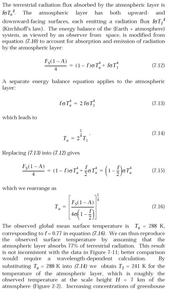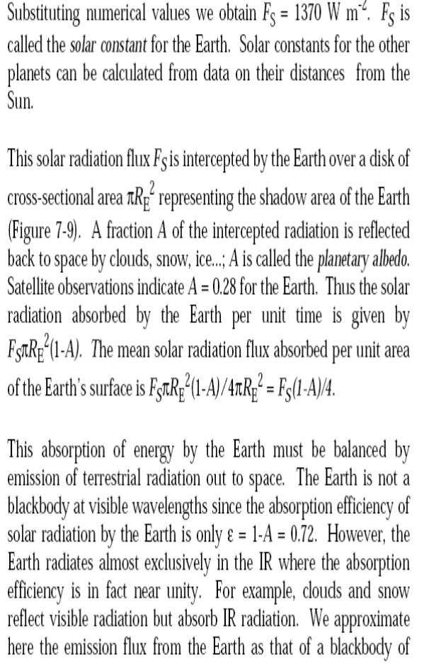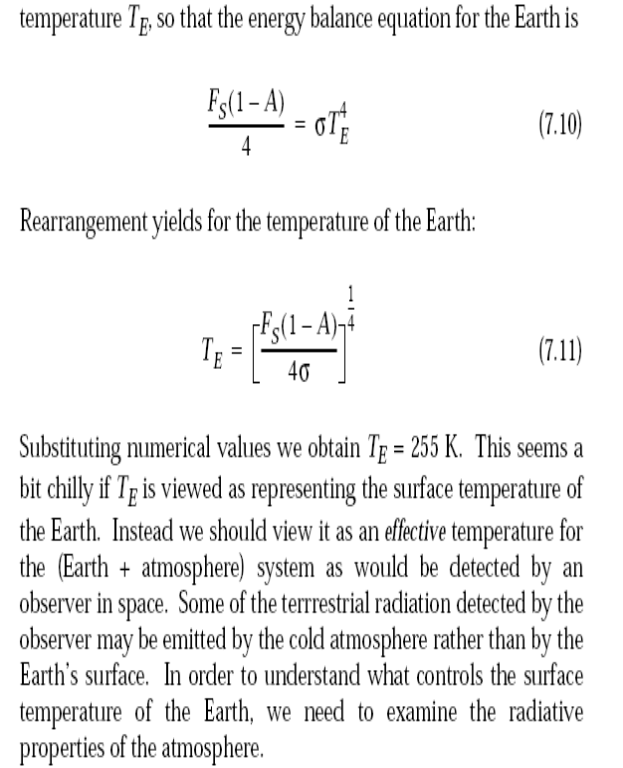 Поглощенная радиация должна компенсироваться излучаемой Землей радиации ей в соответствии с законом Стефана-Больцмана