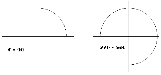 Вот как выглядят две дуги: одна с углами 0 и 90, вторая 270 и 540 градусов (рис. 14.6):