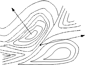 Выбираем точку где хуже. В окрестности существующей точки выбираем точку с меньшим значением, опять в ее окрестности есть точки с меньшим значением и т.д.