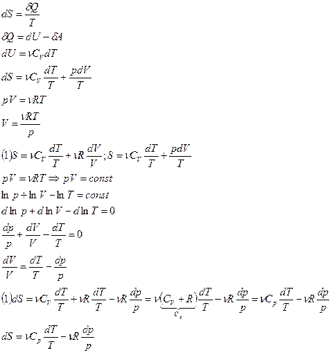 Поскольку энтропия – есть функция состояния, то её можно выразить через параметры состояния (
