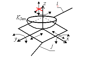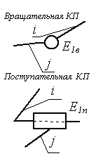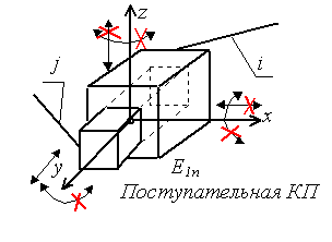 Примечание: Стрелки у координатных осей показывают возможные угловые и линейные относительные перемещения звеньев. Если стрелка перечеркнута, то данное движение в КП запрещено (т.е. на данное относительное движение наложена связь).