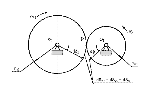 Центроидой (полоидой) называется геометрическое место центров (полюсов) относительного вращения в системах координат связанных со звеньями механизма. В зубчатом механизме при передаче движения центроиды колес перекатываются друг по другу без скольжения.