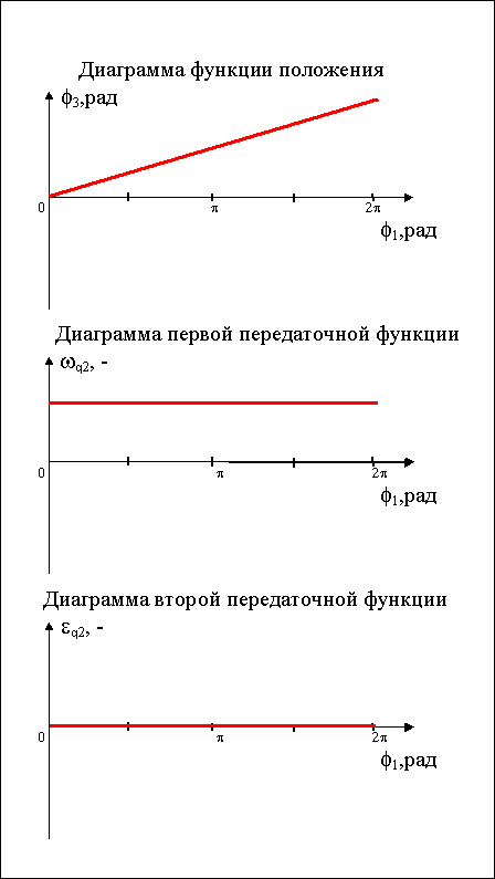 Механизм зубчатой передачи не является цикловым механизмом, так как угловое перемещение выходного звена увеличивается при увеличении углового перемещения входного. Поэтому кинематические диаграммы построим только для одного оборота входного звена.