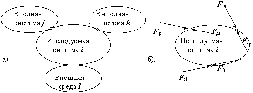 Из теоретической механики: Не изменяя состояния механической системы (движения или равновесия) связь, наложенную на нее можно отбросить, заменив действие связи ее реакцией. На рис. 4.3а изображена исследуемая система i вместе с действующими на нее входной системой j и выходной системой k и внешней средой l.