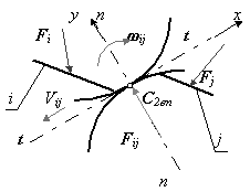 3. Высшая КП. В высшей паре связи,наложенные на относительное движение звеньев, запрещают движение в направлении нормали к контактирующим поверхностям (ось y). Заменяя эту связь реакцией, получим реакцию Fij (см.рис. 4.5).