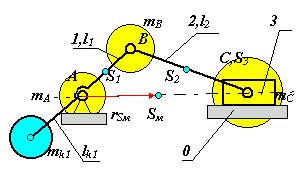 В этом случае необходимо добиться, чтобы центр масс механизма при движении перемещался вдоль направляющей ползуна (для схемы на рис. 5.5 по горизонтали). Для этого достаточно уравновесить только массу mB.