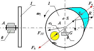 При проектировании детали типа кулачка уравновешиваются так: в деталь с центром на оси вращения вписывается окружность, подсчитываются площади ограниченные контуром кулачка и расположенные вне или внутри окружности, определяется массы и центры масс Sn неуравновешенных частей кулачка, находится эксцентриситет e1 центра масс S1 кулачка по величине и направлению и определяется его дисбаланс с помощью корректирующей массы mk, размещаемой на эксцентриситете e k, создается дисбаланс Dk равный по величине и противоположный по направлению D1.